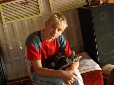 Er liebt hier alle und jeden - vieleicht mich noch 0,001% mehr - ist schlimmer in seiner Anhänglichkeit als mein Hund, schläft in der Armbeuge oder an das Bein gekuschelt, ist ständig mit dabei, hört wie ein Hund auf seinen Namen - und kommt er mal nicht beim rufen, ist er hundertprozentig irgendwo wieder eingeschlossen, weil er wie der Wind hinterhergehuscht ist.