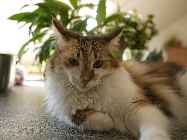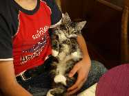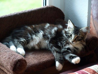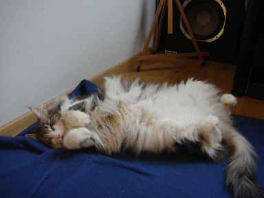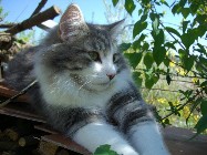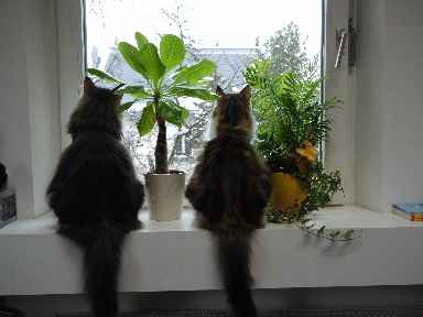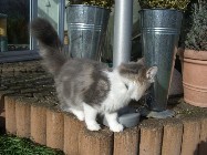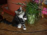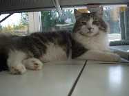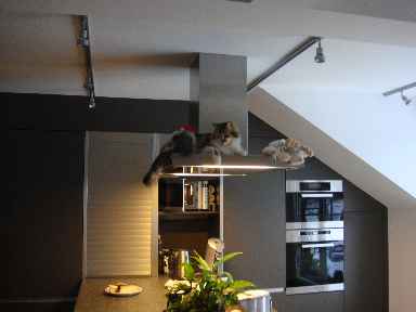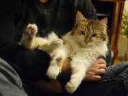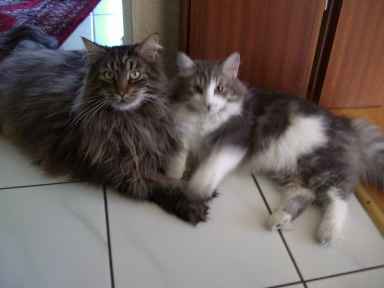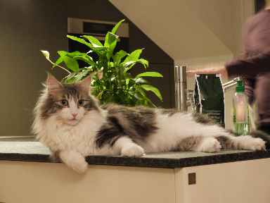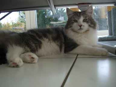 Er dominiert, tyranisiert, drangsaliert, hypnotisiert, animiert hier die ganze Familie, wir sind im hoffnungslos verfallen. Auch unsere beiden großen Katzen haben sich ihrem Schicksal ergeben und huldigen im 98% des Tages. Nach den verbliebenen 2% fange ich halt wieder an den Flur von Milows Unterwolle zu befreien. Auch morgens wird Herr Pascha von beiden hingebungsvollst geschleckt, gebohnert und gewienert, damit er in seiner vollen Pracht erstrahlt. Übrigens - hat Einstein nicht vielleicht doch in früher Jugend einen Kupferdraht oder eine Metallschiene verschluckt: ?? Er kann nämlich seinen Schwanz nur stehend senkrecht tragen, immer und immer. Sollten wir mal Funkausfall haben, werden wir ihn zweckentfremden müssen mit seiner Sendeantenne.