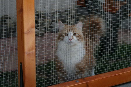 Beim letzten mal habe ich euch ja erzählt, dass der Dieter den Katzenzwinger vergrößern will, damit wir ihm und der Brigitte beim Kaffee trinken auf der Terrasse Gesellschaft leisten können.